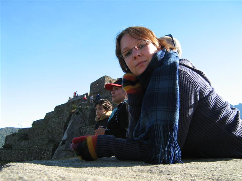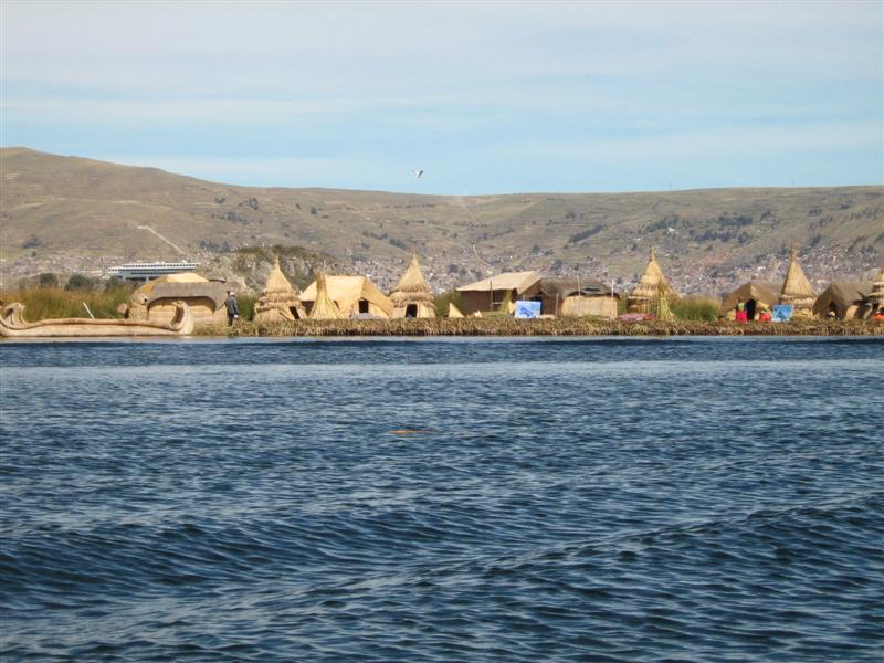 Wir gehen danach zurück zum Hafen und warten auf unser Boot. Am Hafen treffen wir einen lustigen Indonesier, außerdem einen Haufen Amis. Um halb zwei geht es los, das klapperige Boot braucht zwei Stunden bis zur Sonneninsel. Dort angekommen haben wir einen Stunde Zeit, danach steht die Rückfahrt an. Wir klettern die Inkatreppe herauf, kommen an der Inkaquelle vorbei und genehmigen uns schließlich einen Kaffee (zweimal 4 Bs). in luftiger Höhe.